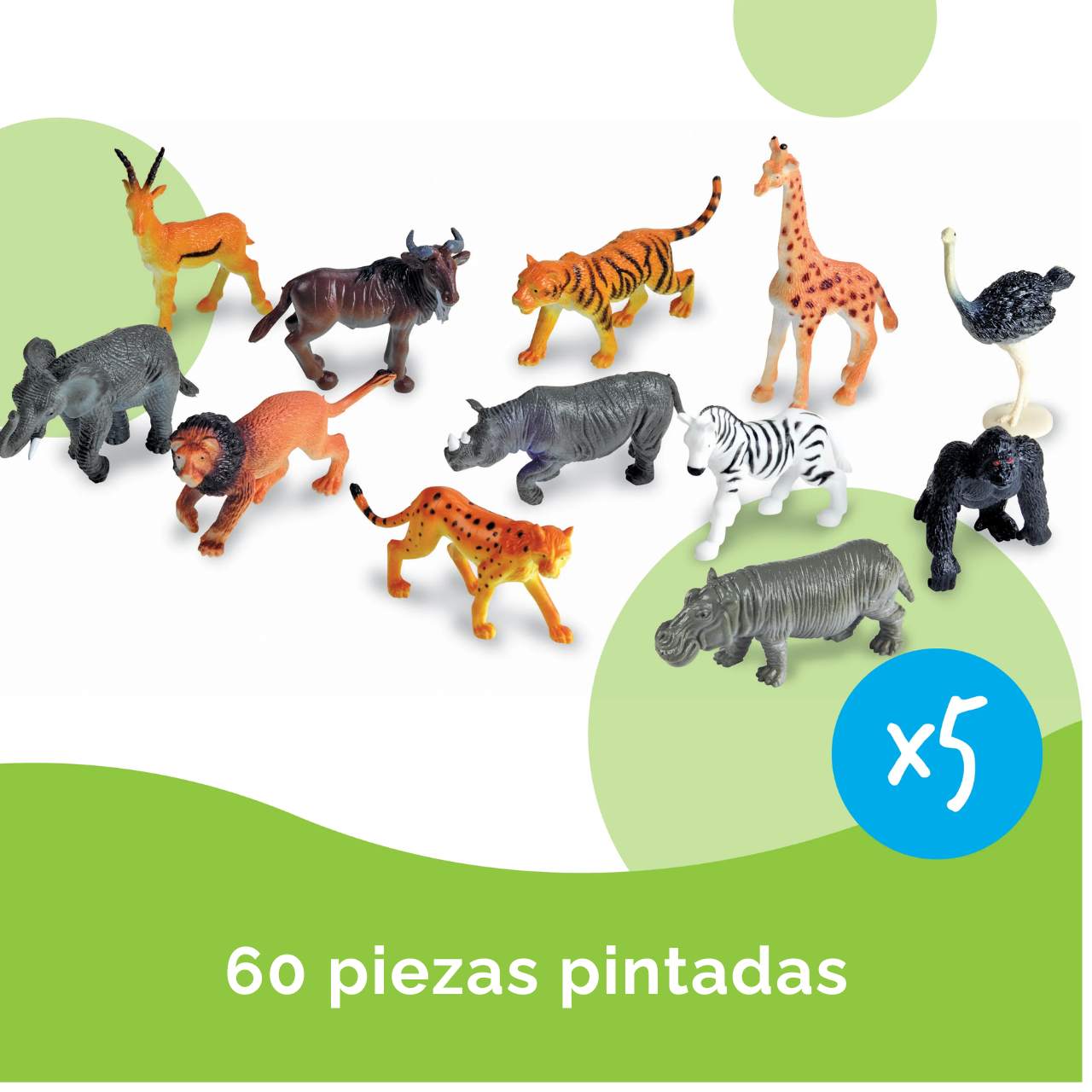 Con 12 especies diferentes y 5 unidades de cada una, este set es perfecto para actividades matemáticas, ciencia y juego en entornos educativos.