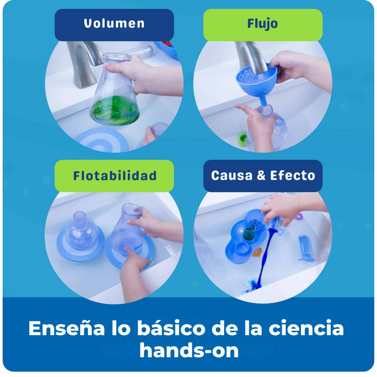 El Laboratorio de Agua Splashology de Learning Resources® permite a los niños y niñas explorar principios científicos fundamentales como volumen, flotación y flujo a través del juego práctico con agua.
