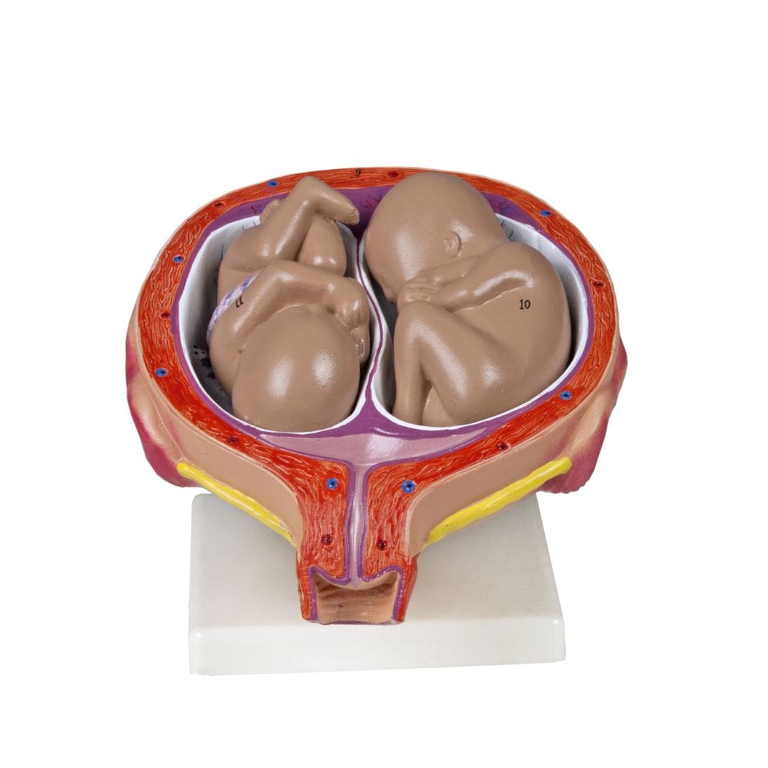 Este set educativo muestra de manera clara y didáctica la evolución del embrión y el feto humano a lo largo del embarazo. Cada etapa está representada en un modelo independiente montado sobre base, permitiendo observar cambios anatómicos mes a mes.