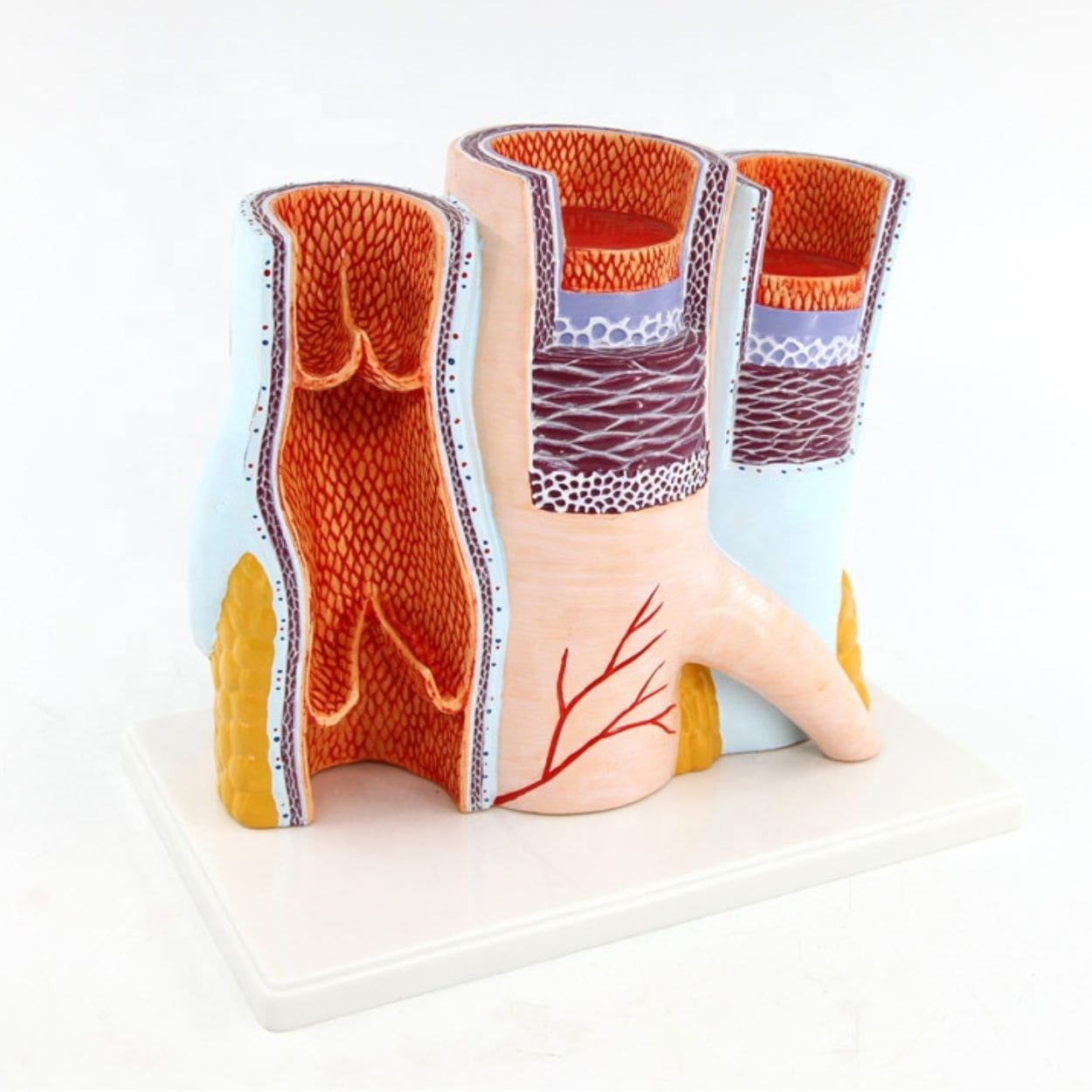 Este modelo anatómico ampliado 20X ofrece una visualización clara y detallada de la estructura de una arteria y dos venas, permitiendo comprender las diferencias histológicas entre ambos tipos de vasos sanguíneos.