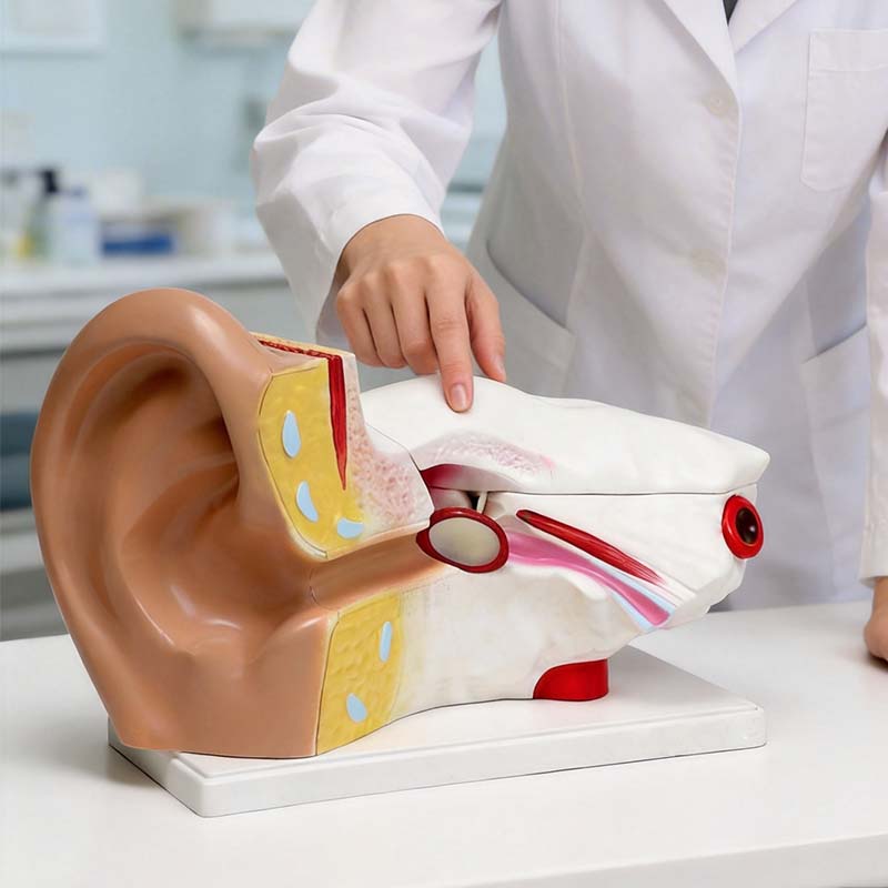 Explora la anatomía del oído humano con este modelo ampliado cuatro veces su tamaño real.