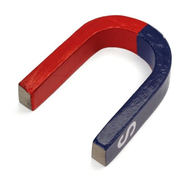 Imán herradura de acero de alta resistencia, ideal para experimentos de magnetismo y demostraciones en clases de Física.