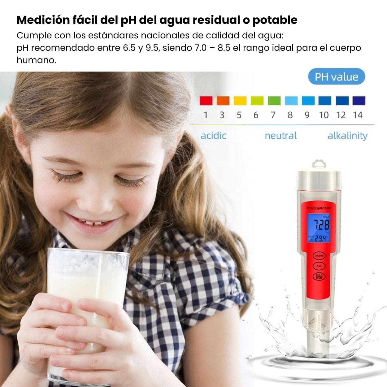 Instrumento portátil de alta precisión diseñado para medir de forma simultánea el pH, TDS, conductividad eléctrica (EC) y temperatura del agua. Ideal para uso educativo, industrial y de laboratorio.