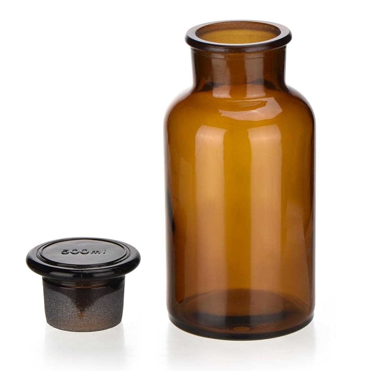 Frasco Reactivo Ámbar 500 mL | Tapón Esmerilado Boca Ancha